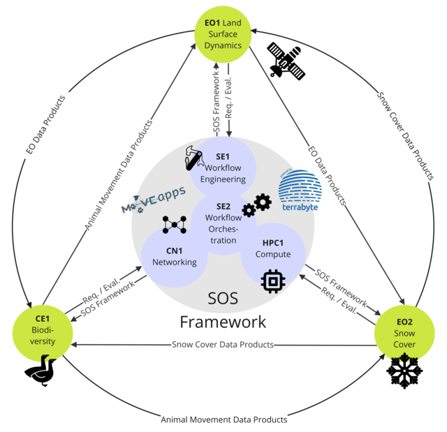To this end, part of the RU is led by geoscientists and ecologists. This part includes domain-specific research objectives as follows: (a) investigate the impact of land surface dynamics on the movement pathways of migratory animals, as a basis for predicting future space use and species composition and (b) investigate the impact of climate change on snow cover and snowmelt dynamics. Overall, we expect to see a major impact in the field of scientific computing and engineering for EO and sustainability research, significantly boosting the productivity within the domains while opening up manifold opportunities for novel interdisciplinary research beyond the boundaries of remote sensing and computational ecology.